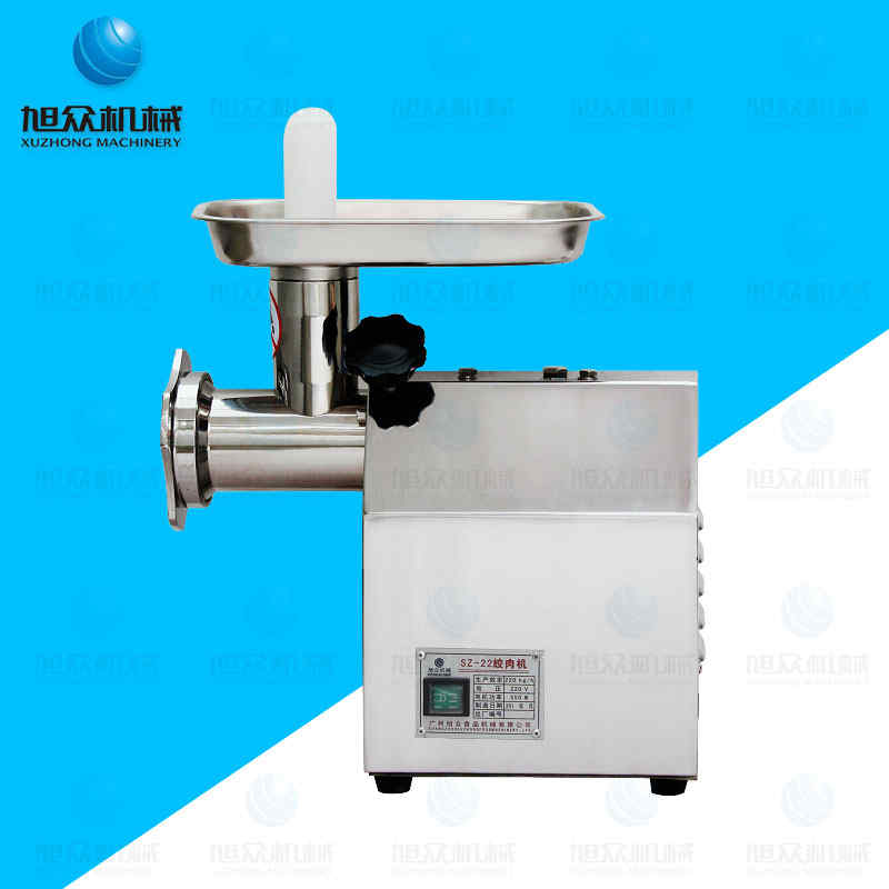 SZ-22 電動(dòng)絞肉機(jī),電動(dòng)絞肉機(jī)的??字睆綖?、8mm,本機(jī)優(yōu)點(diǎn)具有電耐用、方便快捷、結(jié)構(gòu)緊湊、外形美觀(guān)、操作方便、效率高、耗電少、清潔保養(yǎng)容易、安全衛(wèi)生等優(yōu)點(diǎn)。采用全封閉齒輪傳動(dòng),結(jié)構(gòu)緊湊,運(yùn)轉(zhuǎn)平穩(wěn),工作可靠,且維修方便;絞肉機(jī)頭及接觸食品的零部件都采用不銹鋼制造,安全無(wú)污染;機(jī)殼線(xiàn)條流暢,沒(méi)有可污的縫隙及無(wú)傷害操作者的銳邊,易于清潔。