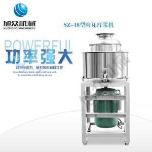 SZ-18型肉丸打漿機(jī),本機(jī)裝肉用桶子采用不銹鋼制造,達(dá)到衛(wèi)生要求,肉桶外罩和桶底裝有冷卻裝置,確保肉漿新鮮。比手工的打漿更精細(xì),所產(chǎn)肉丸、魚(yú)丸彈性好,色澤潔白。