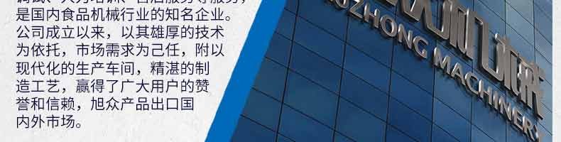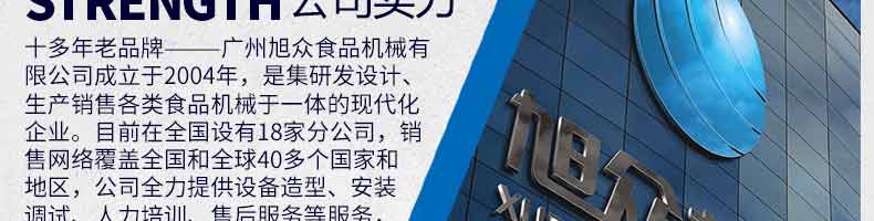 廣州旭眾食品機(jī)械有限公司是一家集科研開(kāi)發(fā),生產(chǎn)設(shè)計(jì),營(yíng)銷(xiāo)服務(wù)為一體的現(xiàn)代化生產(chǎn)企業(yè)。現(xiàn)代化生產(chǎn)車(chē)間,精湛制造技術(shù),所產(chǎn)機(jī)械歷經(jīng)市場(chǎng)重重考驗(yàn),不斷贏(yíng)得海內(nèi)外客戶(hù)的贊譽(yù)。