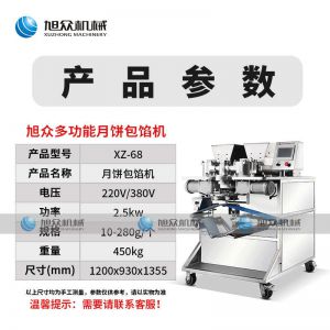 XZ-68月餅包餡機(jī),一次成型大小均勻,操作簡(jiǎn)單,可生產(chǎn)豆沙、五仁、蓮蓉等餡料的包餡類(lèi)產(chǎn)品制品皮餡比例可調(diào),大小統(tǒng)