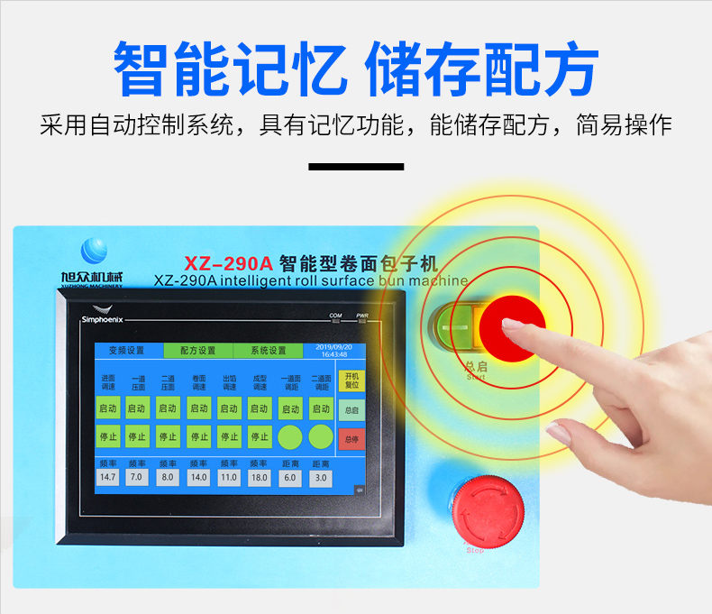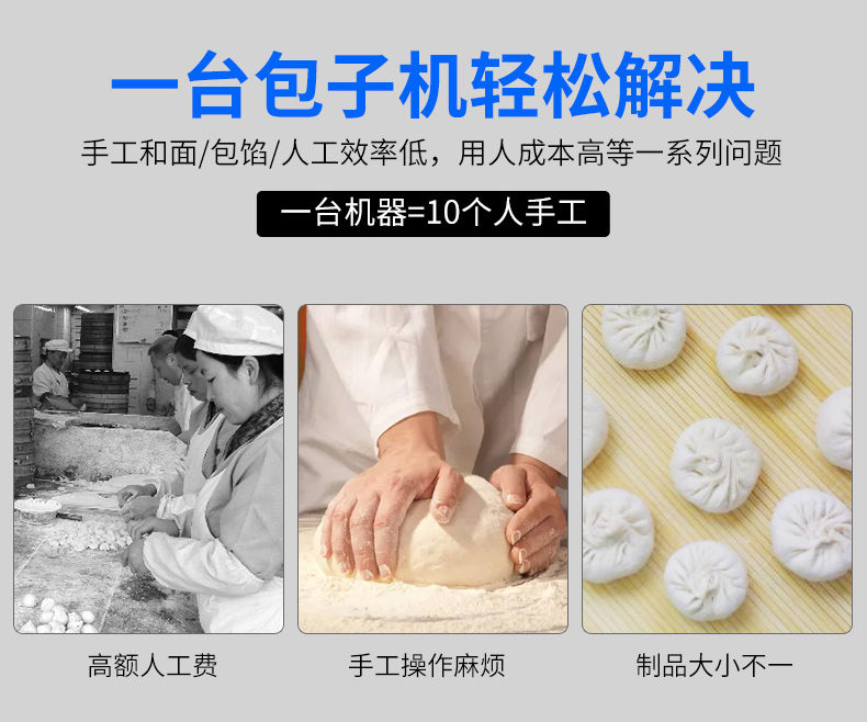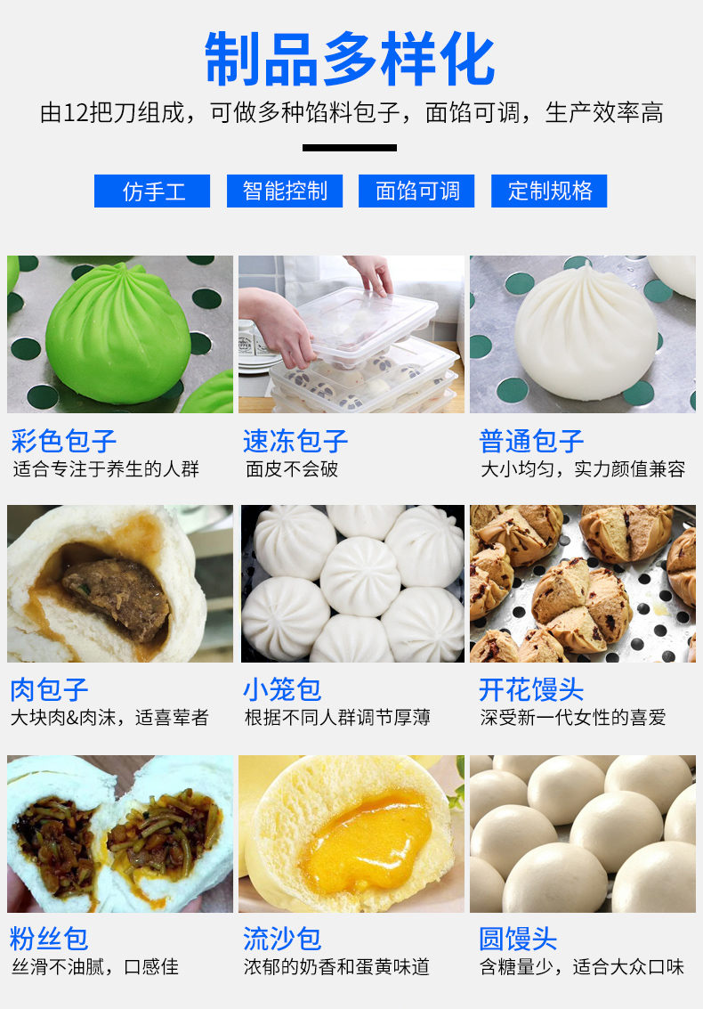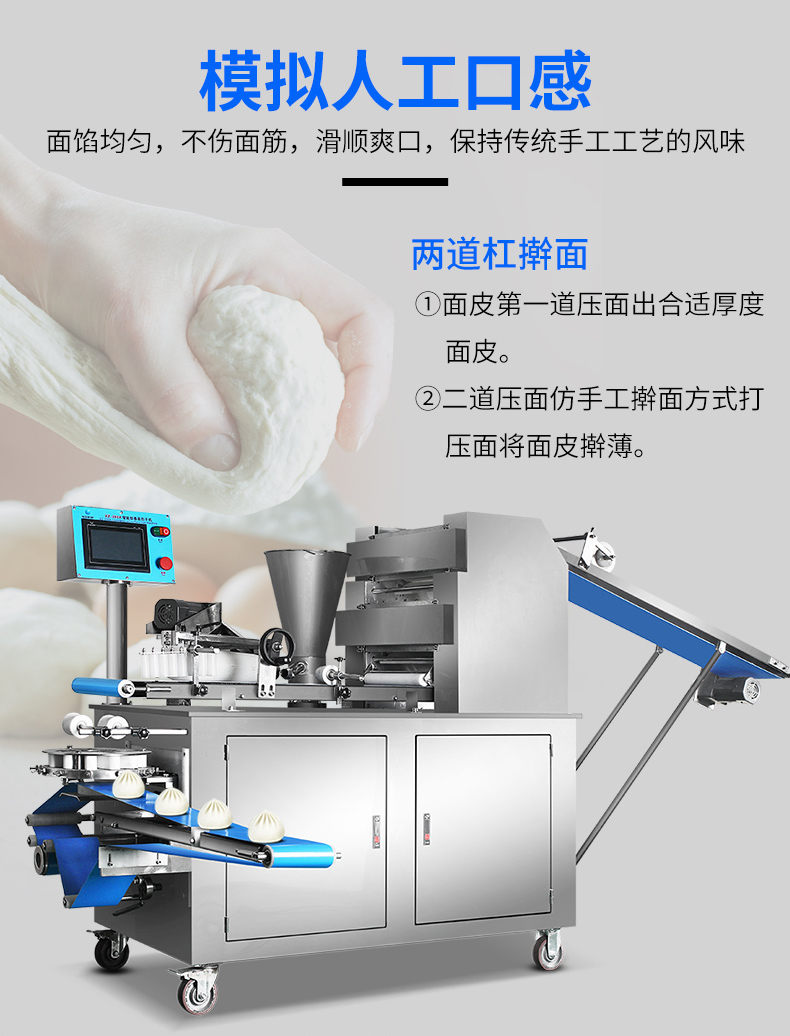 XZ-290A智能型卷面包子機,仿手工智能包子機。操作簡單、精準控制、快速成型、模擬人工。好機器,表里如一,專注品質機器,客戶現(xiàn)場試機。一臺包子機輕松解決手工和面/包餡/人工效率低,用人成本高等一系列問題。