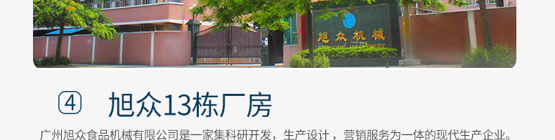廣州旭眾食品機(jī)械有限公司是一家集科研開發(fā),生產(chǎn)設(shè)計(jì),營銷服務(wù)為一體的現(xiàn)代化生產(chǎn)企業(yè)?,F(xiàn)代化生產(chǎn)車間,精湛制造技術(shù),所產(chǎn)機(jī)械歷經(jīng)市場重重考驗(yàn),不斷贏得海內(nèi)外客戶的贊譽(yù)。