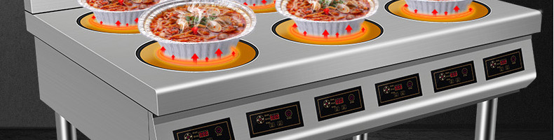 XZ-LBZL210圓頭六頭電陶爐,快餐外賣搶著買,一爐百烹快速出餐。煎炒燜煮煲等各樣花式,樣樣行,單頭3500W大火力實現(xiàn)快速出餐不等待做菜重要的就是火候,火力不足一切都是白搭。