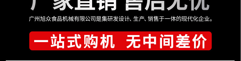 廣州旭眾食品機(jī)械有限公司是一家集科研開發(fā),生產(chǎn)設(shè)計,營銷服務(wù)為一體的現(xiàn)代化生產(chǎn)企業(yè)?,F(xiàn)代化生產(chǎn)車間,精湛制造技術(shù),所產(chǎn)機(jī)械歷經(jīng)市場重重考驗,不斷贏得海內(nèi)外客戶的贊譽。