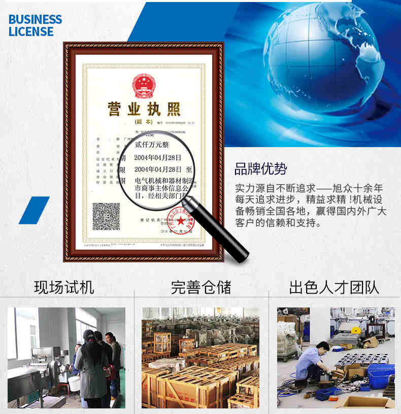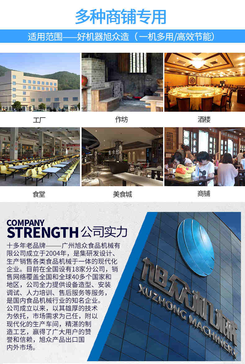 廣州旭眾食品機(jī)械有限公司是一家集科研開(kāi)發(fā),生產(chǎn)設(shè)計(jì),營(yíng)銷(xiāo)服務(wù)為一體的現(xiàn)代化生產(chǎn)企業(yè)。現(xiàn)代化生產(chǎn)車(chē)間,精湛制造技術(shù),所產(chǎn)機(jī)械歷經(jīng)市場(chǎng)重重考驗(yàn),不斷贏得海內(nèi)外客戶(hù)的贊譽(yù)。