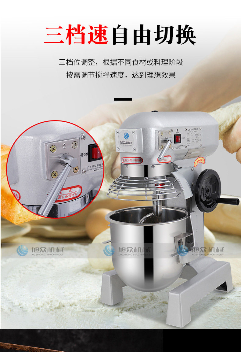SZM-10A攪拌機(jī),三檔速自由切換。三檔位調(diào)整,根據(jù)不同食材或料理階段按需調(diào)節(jié)攪拌速度,達(dá)到理想效果。強(qiáng)勁動(dòng)力,源于強(qiáng)芯配置純銅電機(jī),滿足高強(qiáng)度需求,堅(jiān)固耐用大功率電機(jī),澎湃動(dòng)力,和面有力更均勻。