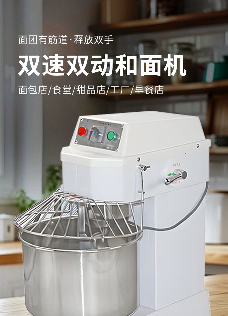 SZH-30型雙速雙動(dòng)和面機(jī),本機(jī)適合攪拌各種面包、包子、饅頭、湯圓、披薩餅面團(tuán),專業(yè)設(shè)計(jì)避免面團(tuán)過(guò)分升溫并確保面團(tuán)含氧量。過(guò)載、缺相保護(hù)裝置,防護(hù)罩安全連動(dòng)裝置。