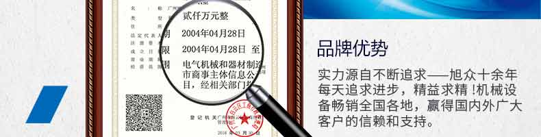 廣州旭眾食品機(jī)械有限公司是一家集科研開發(fā),生產(chǎn)設(shè)計(jì),營銷服務(wù)為一體的現(xiàn)代化生產(chǎn)企業(yè)?,F(xiàn)代化生產(chǎn)車間,精湛制造技術(shù),所產(chǎn)機(jī)械歷經(jīng)市場重重考驗(yàn),不斷贏得海內(nèi)外客戶的贊譽(yù)。