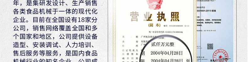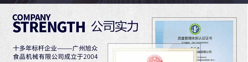 廣州旭眾食品機(jī)械有限公司是一家集科研開(kāi)發(fā),生產(chǎn)設(shè)計(jì),營(yíng)銷(xiāo)服務(wù)為一體的現(xiàn)代化生產(chǎn)企業(yè)。現(xiàn)代化生產(chǎn)車(chē)間,精湛制造技術(shù),所產(chǎn)機(jī)械歷經(jīng)市場(chǎng)重重考驗(yàn),不斷贏得海內(nèi)外客戶的贊譽(yù)。