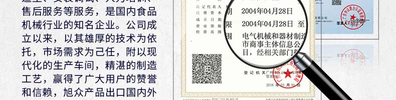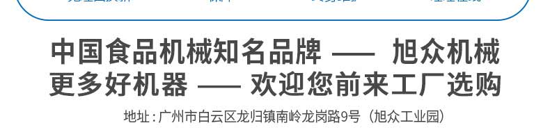 廣州旭眾食品機(jī)械有限公司是一家集科研開(kāi)發(fā),生產(chǎn)設(shè)計(jì),營(yíng)銷(xiāo)服務(wù)為一體的現(xiàn)代化生產(chǎn)企業(yè)。現(xiàn)代化生產(chǎn)車(chē)間,精湛制造技術(shù),所產(chǎn)機(jī)械歷經(jīng)市場(chǎng)重重考驗(yàn),不斷贏得海內(nèi)外客戶(hù)的贊譽(yù)。