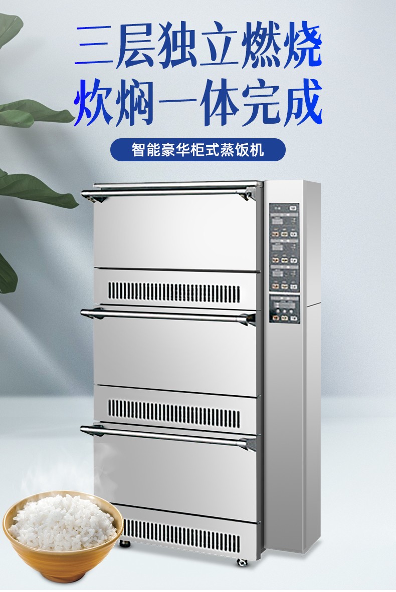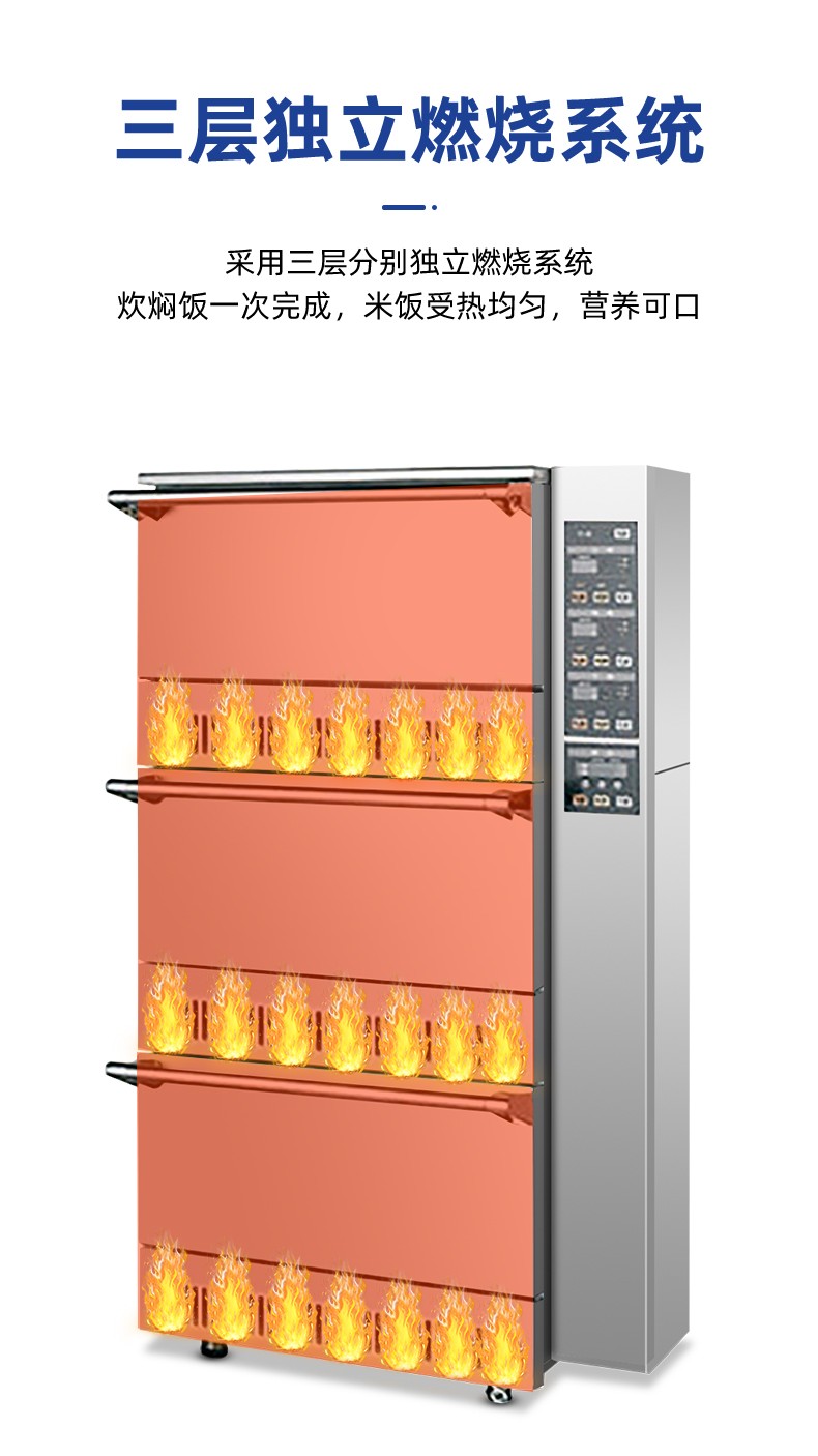立式米飯機,主要結(jié)構(gòu):主要由全不銹鋼柜體、上下三層結(jié)構(gòu)加原鋁鎂合金模鑄鍋體、微電腦自動控制系統(tǒng)燃燒系統(tǒng)、熄火保護系統(tǒng)等組成。適用對象:主要用于生產(chǎn)加工高品質(zhì)米飯的壽司店、高端酒店西餐廚房、茶餐廳以及高端的快餐門店等