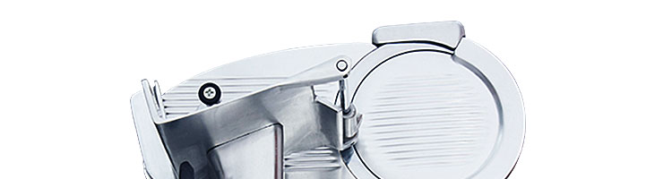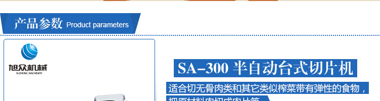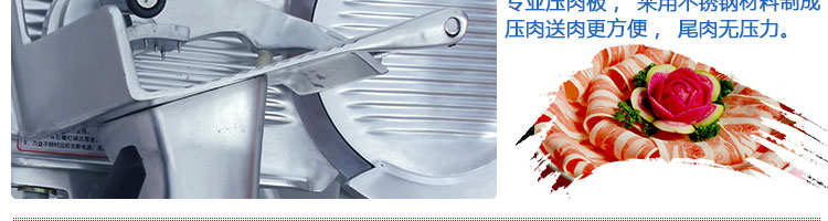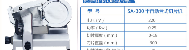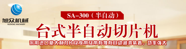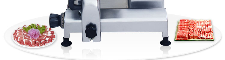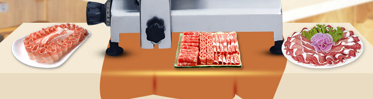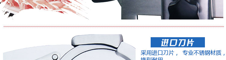 臺式半自動切片機,適合切無骨肉類和其他類似榨菜帶有彈性的食物,把原材料肉切成肉片,并可自動成卷狀??汕信H馄⒀蛉馄?/p>