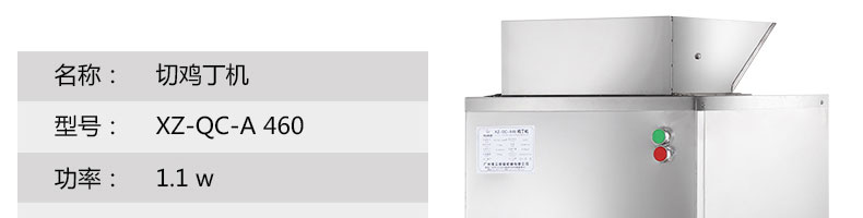 XZ-QC-A460切丁機,切雞丁機適合將帶軟骨的禽類,如雞、鴨、鵝、鴿、魚類等切成塊(?。睢1鞠盗性O備工作效率高,采用不銹鋼制作,美觀耐用,切割快速,少碎骨。