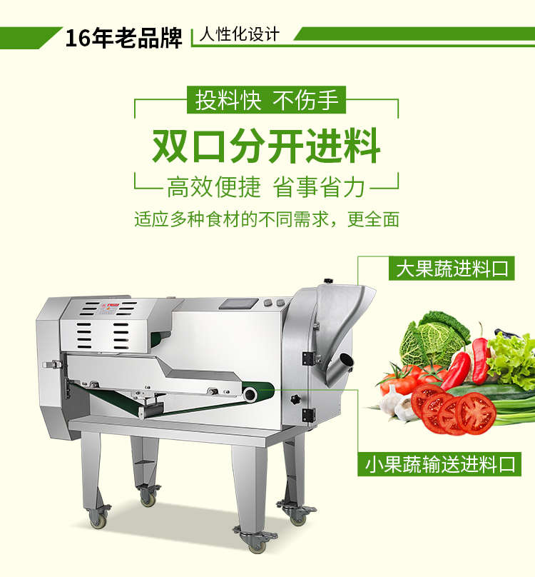 XZ-690A型多功能切菜機,工作效率高,幫你省人工費。1小時可切600kg-1600kg/h,1臺機器等于多名廚師同時為您工作。一機多用,可切瓜果、蔬菜、藥材,刀片可進行更換,設計周到,結(jié)構(gòu)合理,簡單輕松應對。