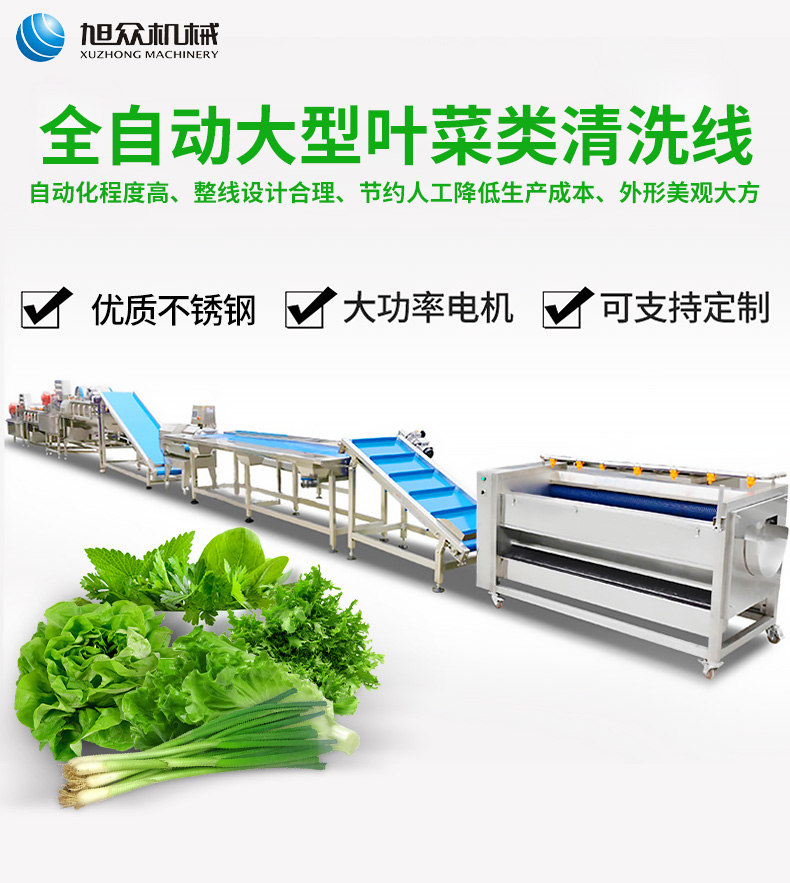 全自動大型葉菜清洗線,自動化程度高、整線設(shè)計合理、節(jié)約人工降低生產(chǎn)成本、外形美觀大方。主要用于葉菜加工,整線自動化凈菜生產(chǎn)此線將切割、清洗、風干設(shè)備連接成線,適合芹菜、韭菜菠菜、大白菜高麗菜、大蔥等葉菜類蔬菜加工生產(chǎn)