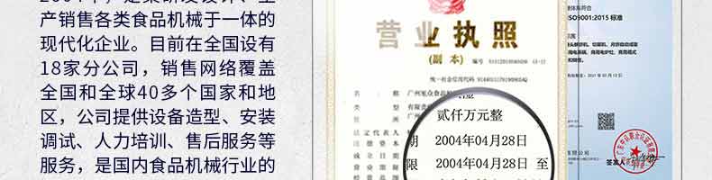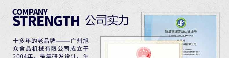 廣州旭眾食品機(jī)械有限公司是一家集科研開(kāi)發(fā),生產(chǎn)設(shè)計(jì),營(yíng)銷服務(wù)為一體的現(xiàn)代化生產(chǎn)企業(yè)。現(xiàn)代化生產(chǎn)車間,精湛制造技術(shù),所產(chǎn)機(jī)械歷經(jīng)市場(chǎng)重重考驗(yàn),不斷贏得海內(nèi)外客戶的贊譽(yù)。