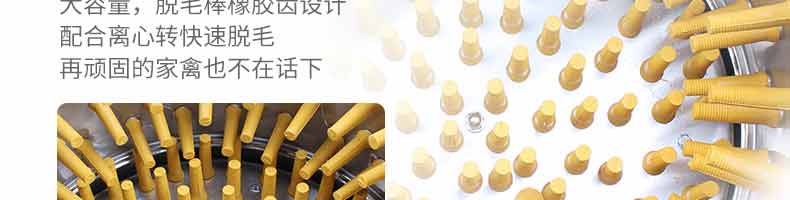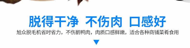 鵝鴨型脫毛機(jī),本機(jī)用于雞、鴨、鵝宰殺后的自動(dòng)脫毛,還可用于脫姜皮、脫馬鈴薯皮、脫魚鱗等農(nóng)產(chǎn)品。本機(jī)操作簡(jiǎn)單,省力、省時(shí)間、工作效率相當(dāng)于十多個(gè)人的手工勞動(dòng)。