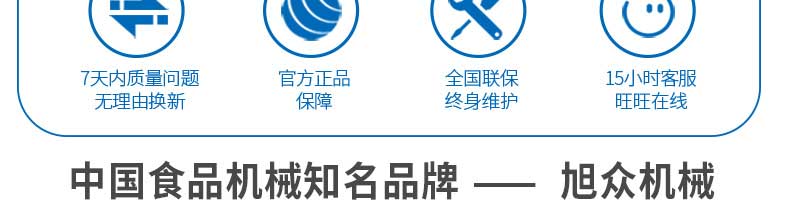 廣州旭眾食品機械有限公司是一家集科研開發(fā),生產(chǎn)設計,營銷服務為一體的現(xiàn)代化生產(chǎn)企業(yè)?,F(xiàn)代化生產(chǎn)車間,精湛制造技術,所產(chǎn)機械歷經(jīng)市場重重考驗,不斷贏得海內(nèi)外客戶的贊譽。