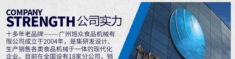 廣州旭眾食品機械有限公司是一家集科研開發(fā),生產(chǎn)設計,營銷服務為一體的現(xiàn)代化生產(chǎn)企業(yè)?,F(xiàn)代化生產(chǎn)車間,精湛制造技術,所產(chǎn)機械歷經(jīng)市場重重考驗,不斷贏得海內外客戶的贊譽。