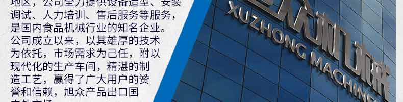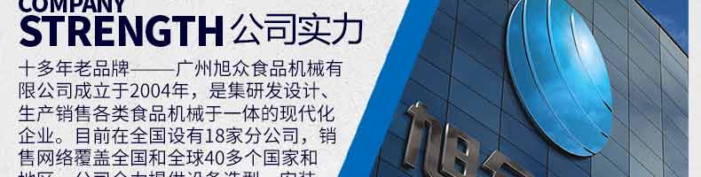 廣州旭眾食品機(jī)械有限公司是一家集科研開發(fā),生產(chǎn)設(shè)計(jì),營(yíng)銷服務(wù)為一體的現(xiàn)代化生產(chǎn)企業(yè)。現(xiàn)代化生產(chǎn)車間,精湛制造技術(shù),所產(chǎn)機(jī)械歷經(jīng)市場(chǎng)重重考驗(yàn),不斷贏得海內(nèi)外客戶的贊譽(yù)。