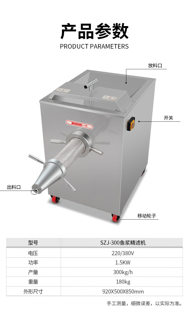 SZJ-300魚漿精濾機,商用創(chuàng)業(yè)魚漿精濾機,用于配套魚肉采肉機進行魚肉過濾雜質。節(jié)省人工開支,人工加工魚漿,效率慢剔除魚細骨,不干凈,有了魚漿精濾機,一人就可以很快制作多種魚漿。